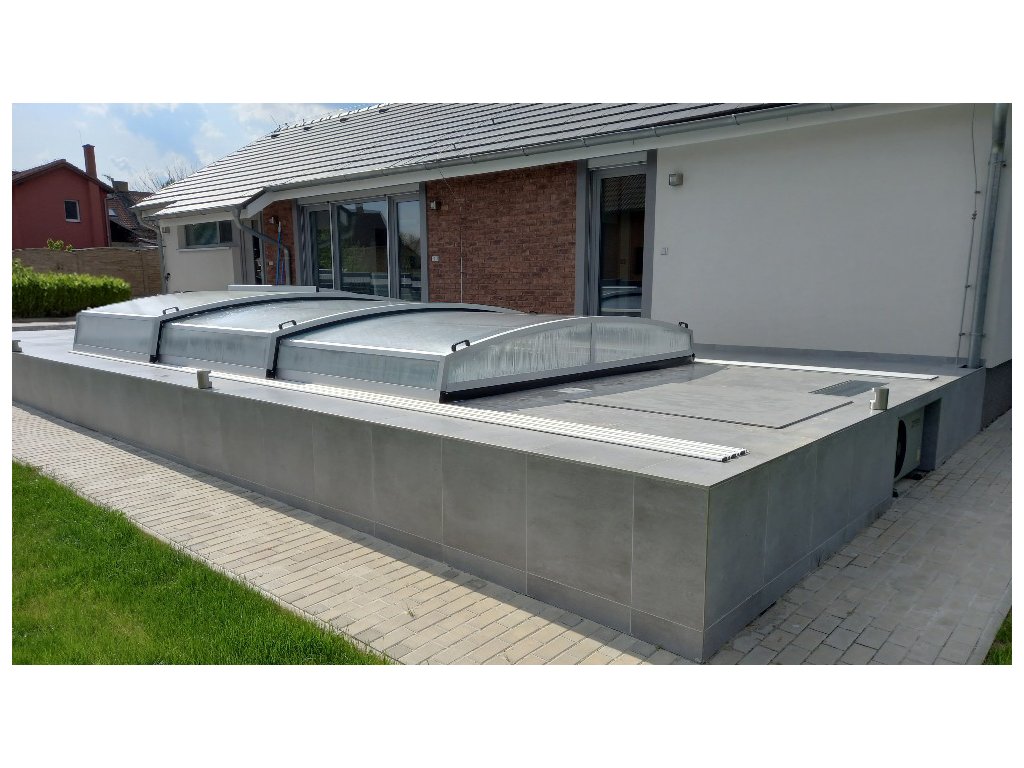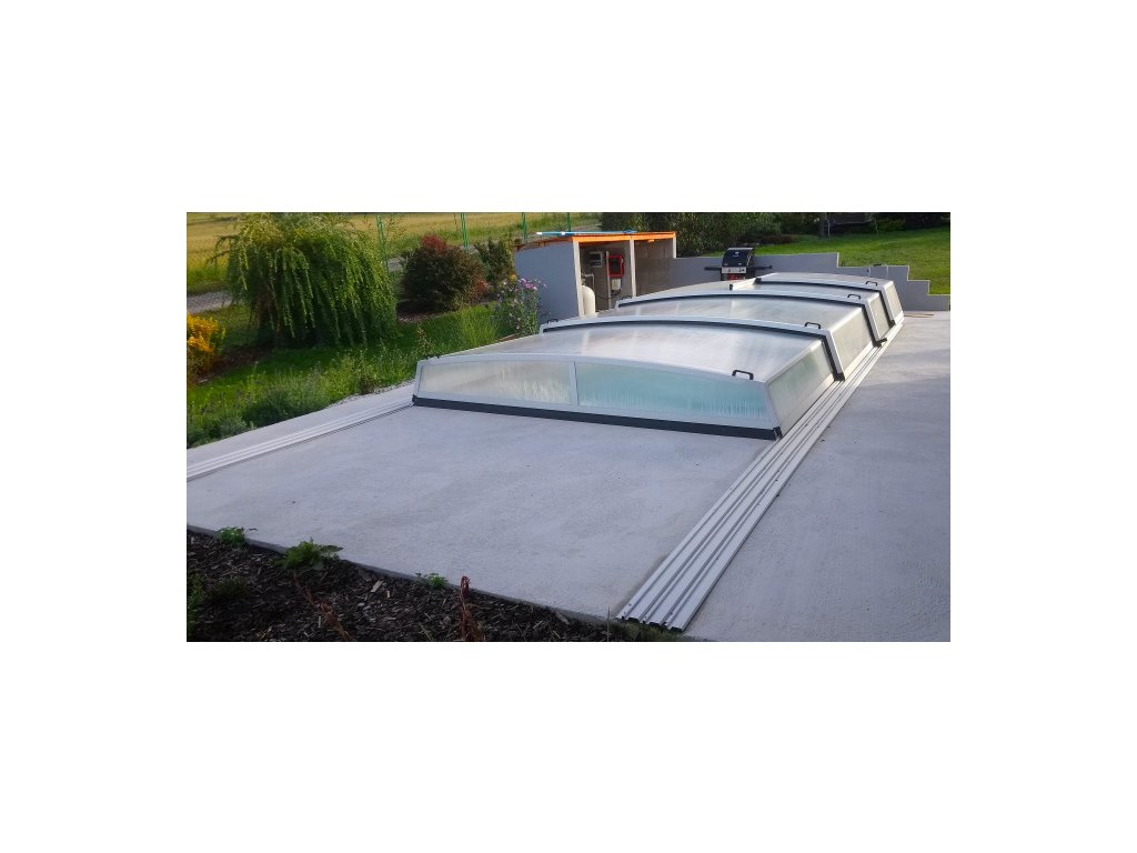 - Dostarczane szyny przechodnie przedłużone są o 242 cm w celu odsunięcia zadaszenia poza basen.