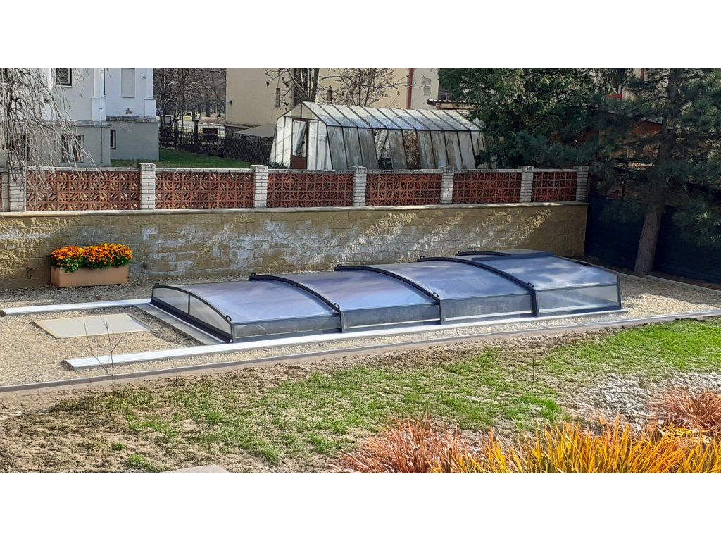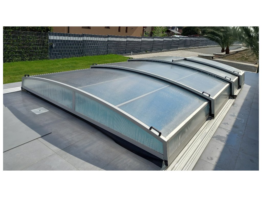 - Dostarczane szyny przechodnie przedłużone są o 220 cm w celu odsunięcia zadaszenia poza basen.