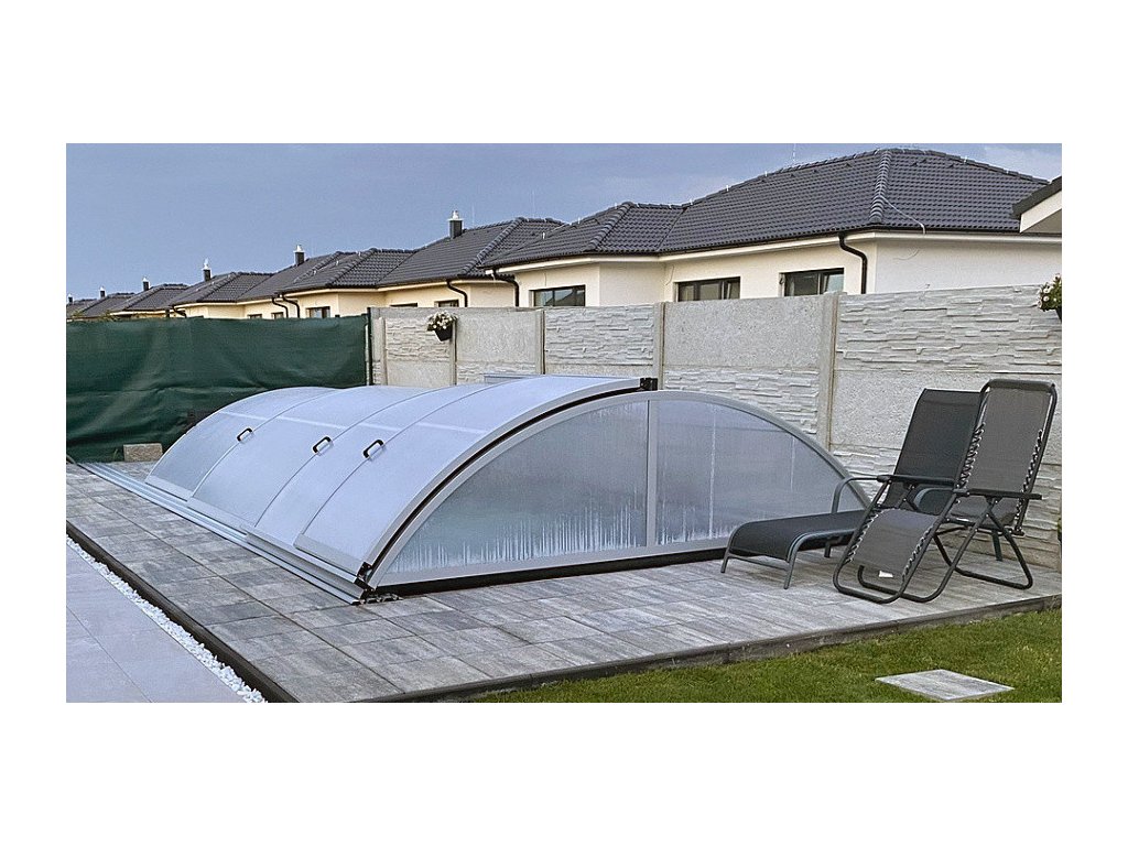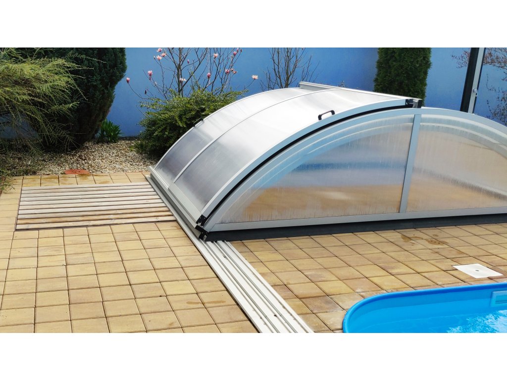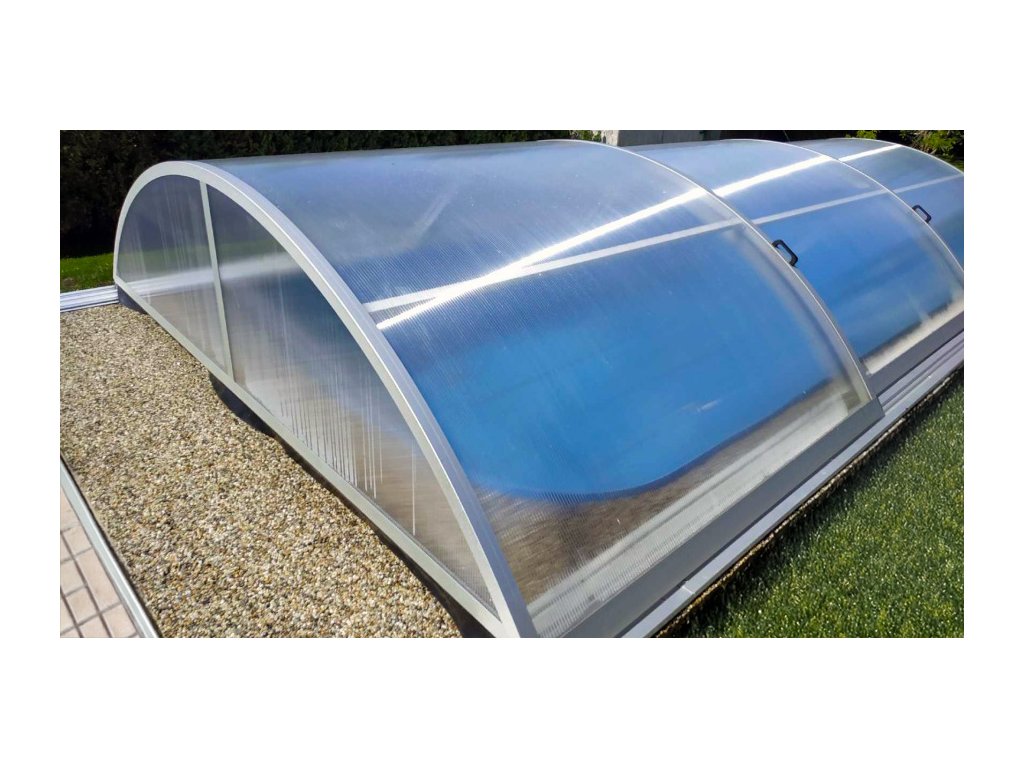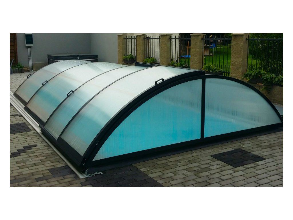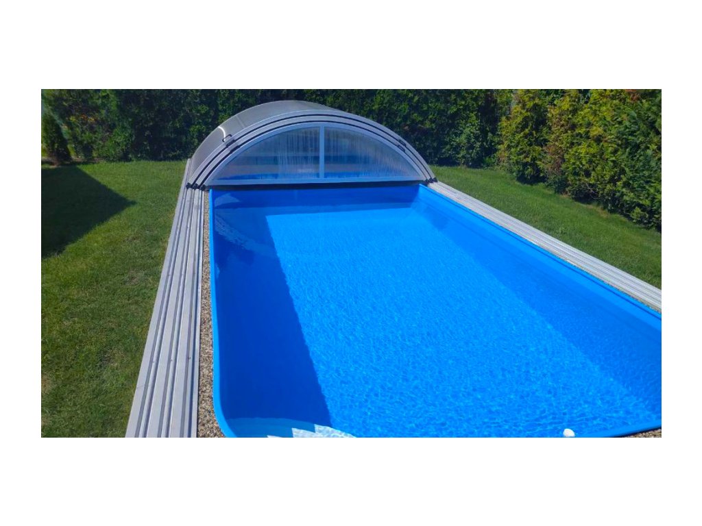 - Dostarczane szyny przechodnie przedłużone są o 220 cm w celu odsunięcia zadaszenia poza basen.