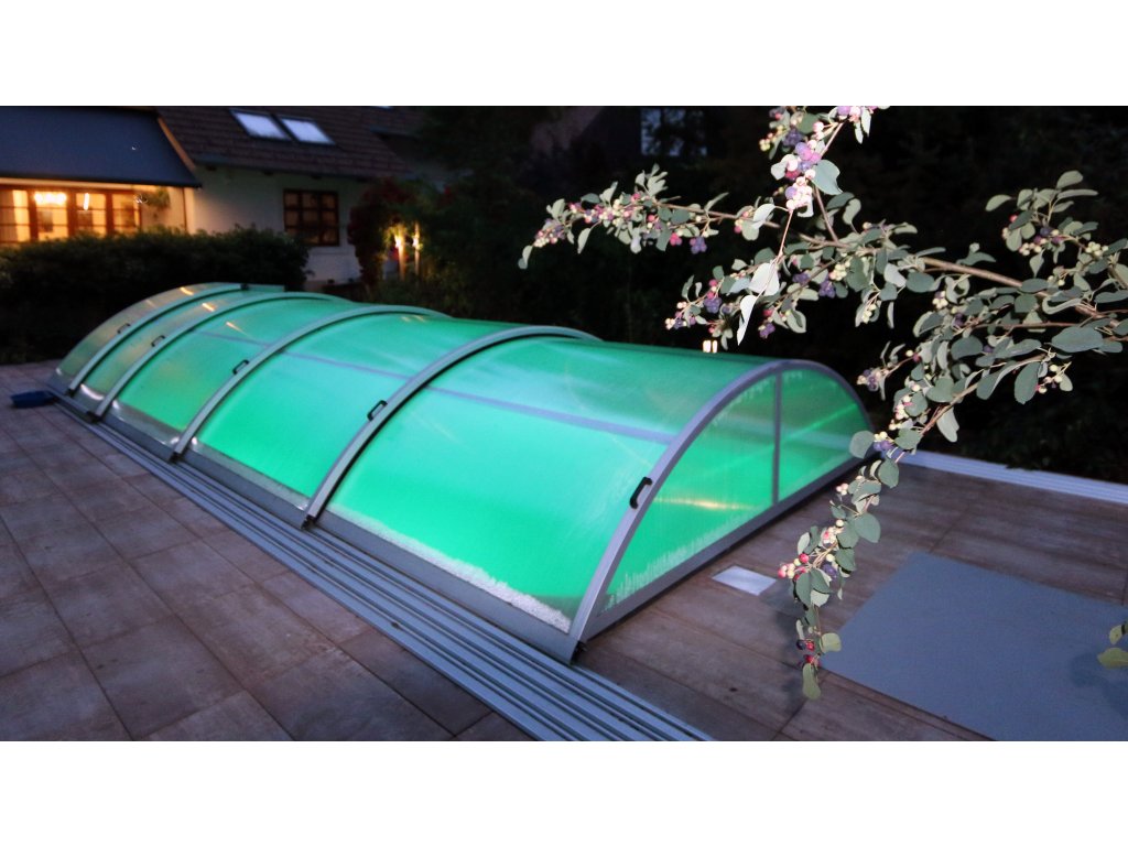 Zadaszenie przedłuża żywotność basenu i spowalnia blaknięcie koloru. Woda pod zadaszeniem pozostaje krystalicznie czysta,