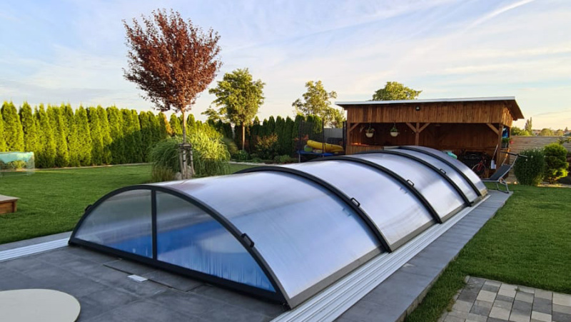 zadaszenie – do zapobiegania albo zmniejszania ryzyka z powodu jakichkolwiek niekorzystnych wpływów zewnętrznych przez zakrycie basenu zadaszeniem (oferta naszego zadaszenia do tego kompletu znajduje się wyżej)